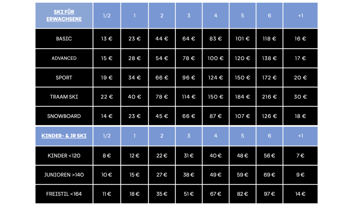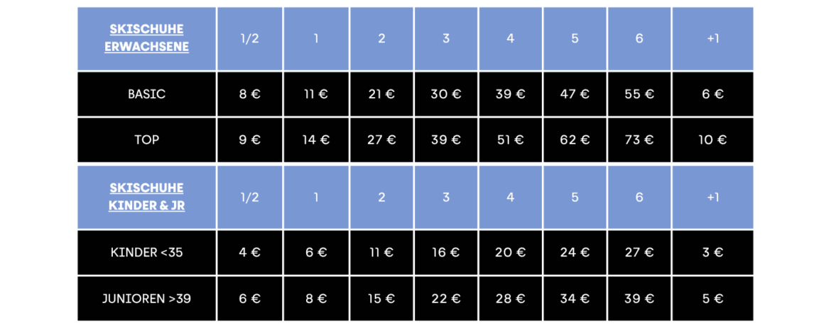Hier findest du eine übersichtliche und aktuelle Übersicht über die Preise für den Skiverleih am Kronplatz.